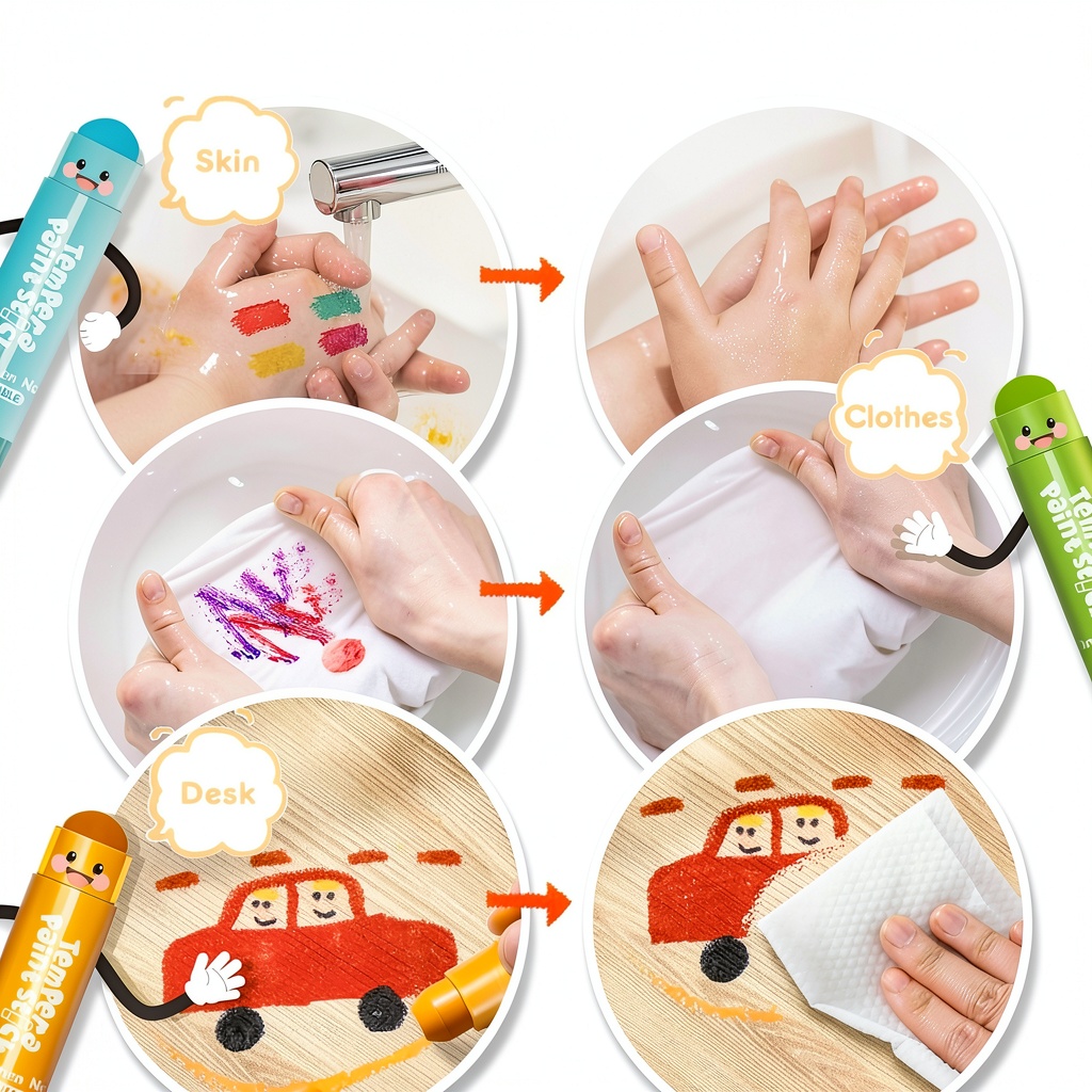 These tempera paint sticks are perfect for a variety of creative environments, including classrooms, home art sessions, and outdoor craft activities. They are suitable for kids, toddlers, students, and artists of all ages, enabling doodling, painting, and detailed artwork on multiple surfaces such as paper, canvas, wood, and stone. The washable feature allows for worry-free use in settings where cleanliness is a priority, like schools or family rooms, and the non-toxic composition ensures safe handling during group projects or individual play. Whether for educational purposes, hobbyist endeavors, or professional art, these sticks support imaginative expression without the hassle of traditional paints.